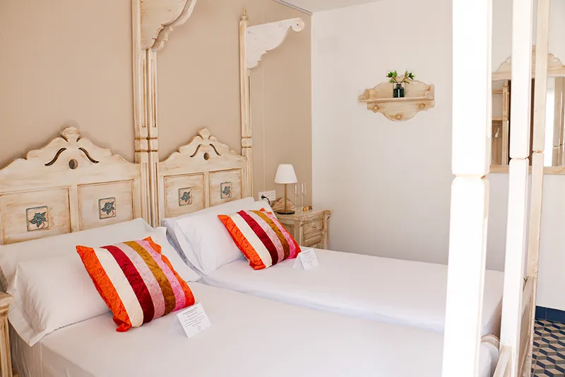 Diseñada para pequeñas familias o grupos de tres personas, nuestra habitación triple combina amplitud y funcionalidad sin perder el encanto rural moderno que define nuestro hostal. Cuenta con camas individuales de 90 cm, armario, caja fuerte, minibar de cortesía, TV, aire acondicionado, calefacción, Wi-Fi gratuito y baño privado completo con ducha. Algunas habitaciones ofrecen vistas al patio o a la calle, y todas están pensadas para garantizar el confort de adultos y niños por igual.